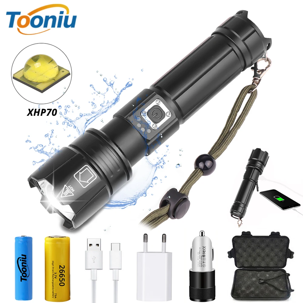 .image for Super bright XHP70 LED flashlight USB input and output function tactical torch 5 lighting mode wate