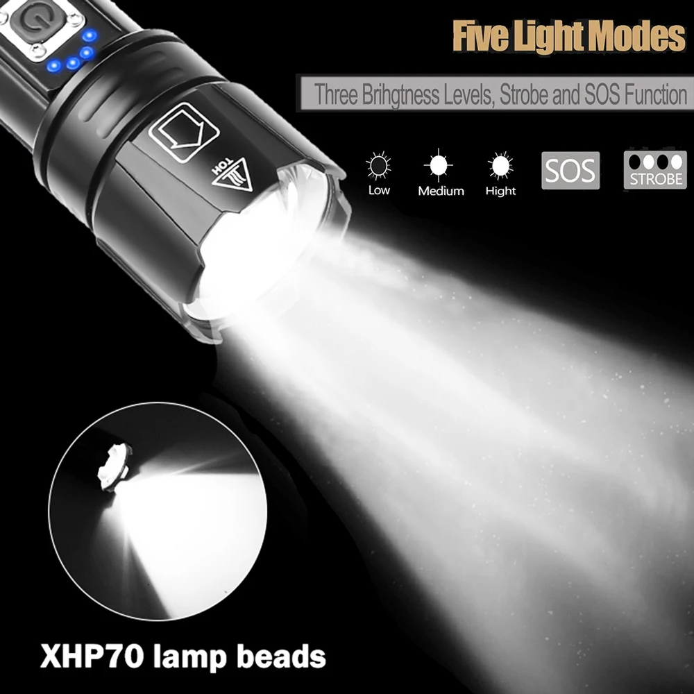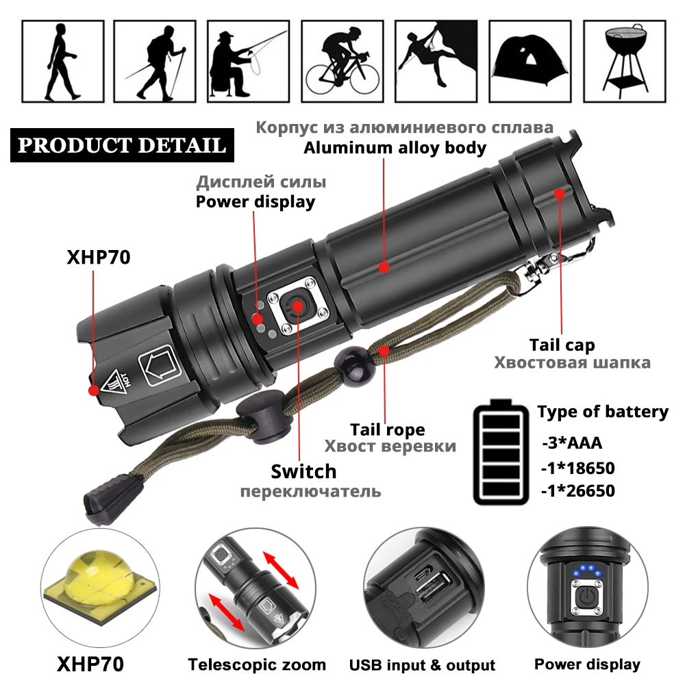 If You search information Super bright XHP70 LED flashlight USB input and output function tactical torch 5 lighting mode wate may be make you love